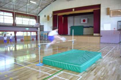 体育館では高跳びが、運動場では走り幅跳び、800m走、そして、