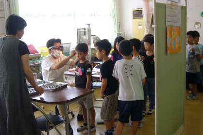 整列して静かに待ち、「おねがいします。」のあいさつもできていました。