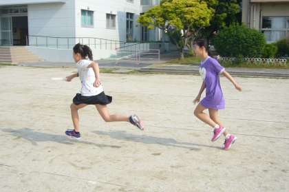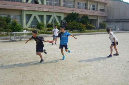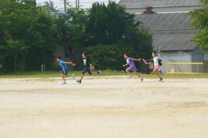 陸上大会に向けて、朝、登校後から鬼北タイムまでの時間、運動場でリレーメンバーが練習をしています。毎日の練習の積み重ねで、バトンパスも上達してきました。