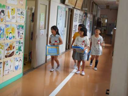 生活科の学習で,学校探検に行きました。お兄さん・お姉さんたちの教室,校長室,理科室,音楽室,放送室など,グループごとに決めてあった部屋へ行って,その部屋に何があるかを見てきたり,お話を聞いてきたりしました。どのグループも,あいさつや廊下歩行の約束などをしっかり守ることができ,とても上手に探検していました。