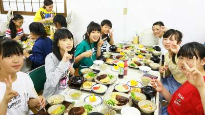 宿での晩ご飯を食べ、夜の買い物に出かけました。