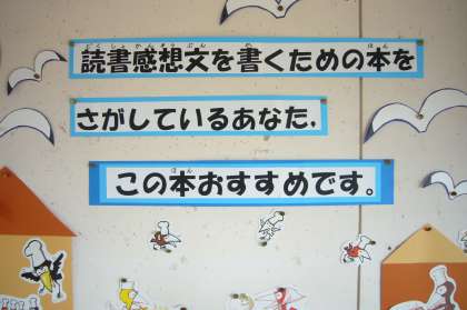 読書感想文をどの本で書こうか探している皆さんに、図書室前にておすすめの本を紹介しています。