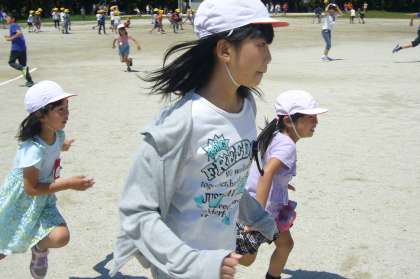 梅雨の合間の晴れの今日、大放課にペア遊びをしました。