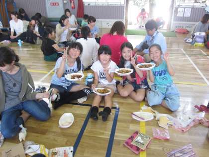 土曜公開日に5年生は防災講座を行いました。「常滑市防災ボランティアリーダー会」のみなさんを講師にお迎えし,「炊き出し」を体験しました。