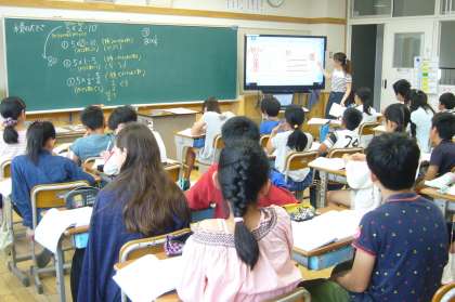 (分数>1、分数=1、分数<1)の場合の積の大きさを論理的に考えたり、かける数が分数の文章問題を解いたりしました。