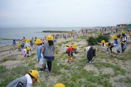 流木、ビニール袋、ペットボトル、陶器、ライター、発泡スチロール・・・。