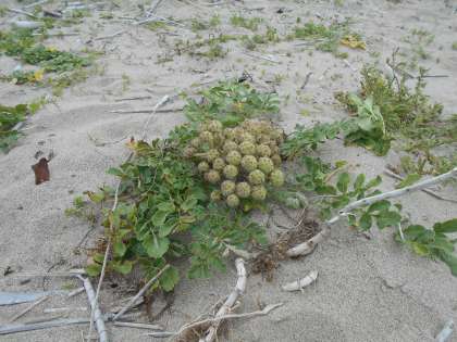 今、鬼崎海岸のハマボウフウは実をつけはじめました。