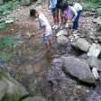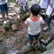 キャンプ場内の自然を生かしてのゲームを実施中です。「木となかよし」「ヤゴさがし」「笹船つくり」等、5年生は夢中になって遊んでいます。