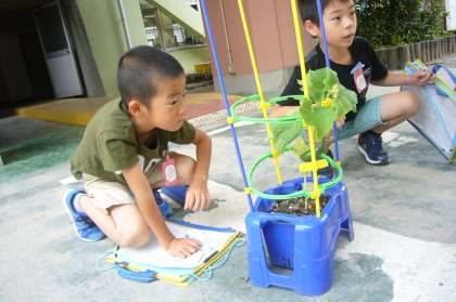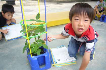栽培しているのは、枝豆、キュウリ、トマト、ナス、オクラです。