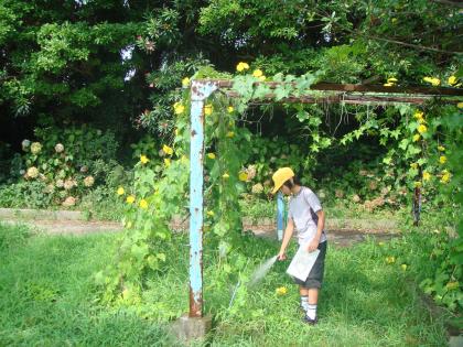 そこで本校では,4年〜6年生の子供たちが毎日順番で水をかけに来てくれています。