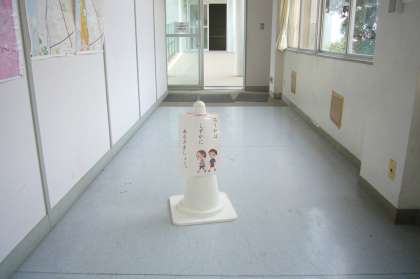 そこで、カラーコーンに注意書きをかぶせて置きました。