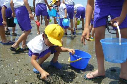 ペアでアサリを探します。