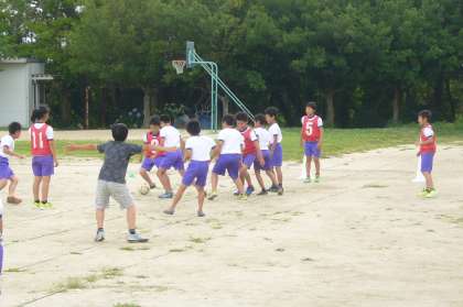 初心者はパスの練習を、それ以外の部員は狭い範囲でのミニゲームや大きなコートでのゲームでトレーニングをしていました。