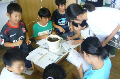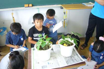 植物の発芽と生長に関して、植物がよく生長するために必要なものを対照実験栽培で確かめました。日光と肥料の二つに関して、条件を変えて栽培した植物を観察して考えました。