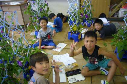 たくさんの色とりどりのアサガオをていねいに観察して書くことができました。