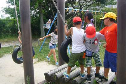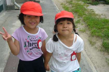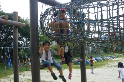 暑くても、外で元気に遊んでいます。