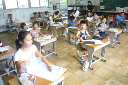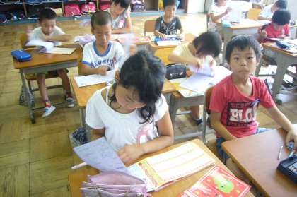 単元の学習確認プリントや漢字・計算ドリルなど、1学期の学習のまとめをしています。
