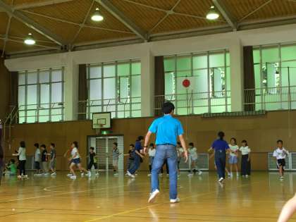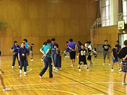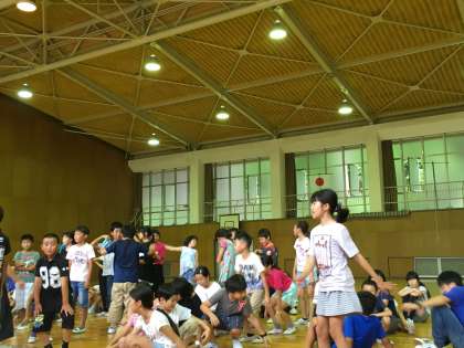 雨のため飯ごう炊さんが中止となり、夕食までの間、レクリエーションをして楽しみます。一つずつ「自然」を感じながら、応援にかけつけた先生方まで登場です。