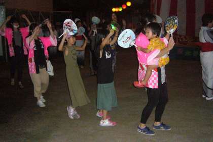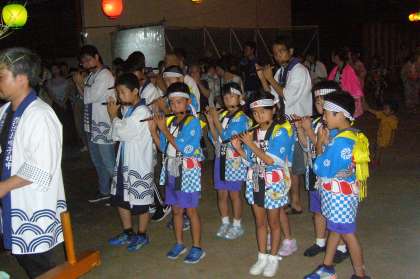 8/12 蒲池区盆おどり大会 公開日 2018/08/12 更新日 2018/08/12 学校からのお知らせ 夕方まで降っていた雨も上がり、 蒲池区の盆おどり大会が松仙寺で開催されました。 やぐらの新調された24個の提灯の下、ときおり心地よく吹く風の中、 常滑音頭で始まった踊りを、大人も子どもも、みんな踊ります。 お囃子の子どもたちも上手でした。 夏休みも後半に入りましたが、 蒲池の子どもたちは元気そうで安心しました。 いいね(0)