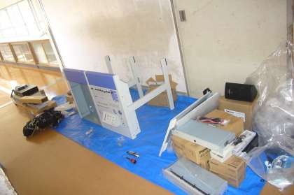 現在、放送室の放送卓入れ替えを含め、校内の放送機器の改修が行われています。