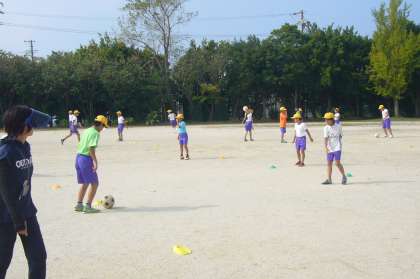 サッカー部は運動場での練習です。