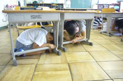 地震発生時にまず、自分の身を守ります。