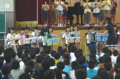 9/10 音楽部 公開日 2018/09/10 更新日 2018/09/10 学校からのお知らせ 大放課、14日(金)に行われる常滑市小中学校音楽会に向けての音楽部激励会が行われました。 実際に演奏する 「あいうえおんがく」と「情熱大陸」メインテーマが本番さながらに演奏されました。 リズミカルにそしてきれいに重なり合う演奏に、みんな聞き入っていました。 本番も、心と音をみんなで一つにして、がんばってください。 ※当日・鬼崎北小:第2部1番:14時01分からの予定です。 いいね(0)