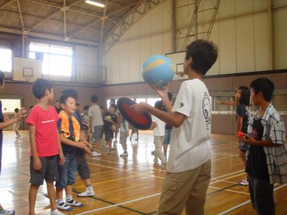 そこで,総務委員の登場。恒例のドッジビーです。