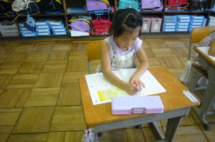 空中書きで書き方をおさらいして、テキストを使ってなぞり書き。