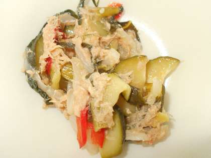 ズッキーニいためも、近くで見ると・・・