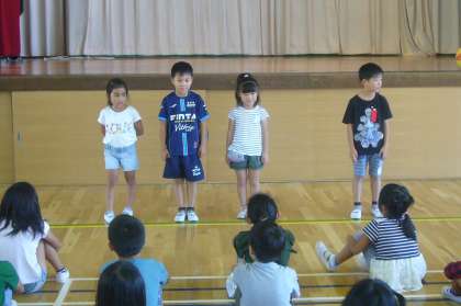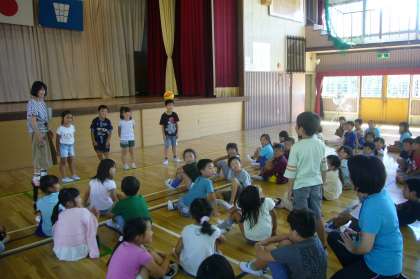自己紹介から質問コーナー、そしてお祝いの歌に「きこりとりす」のお楽しみ遊びをしました。