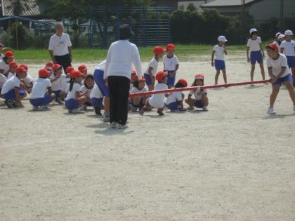 運動会の種目「台風の目」を4年生と一緒に練習しました。