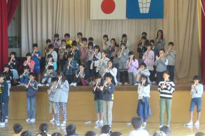 5年生はリコーダーを、2年生は歌を披露しました。