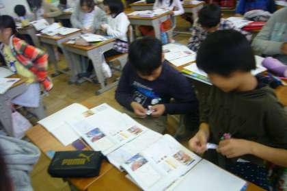 自分の服がどこで作られているものか、また、資料集から、日本との貿易の品やその量、相手国等を調べ、どんな問題が生じるかを考えました。