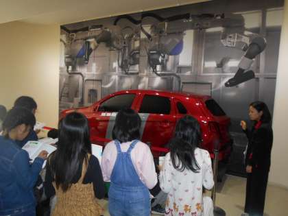 運ばれてきた鉄の状態から,プレス,溶接,塗装,組み立て,検査まで,全ての工程を見ることができ,学びの多い見学でした。