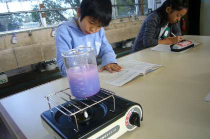 サーモテープを使ったり指温インクを使ったりして、色の変化から温まり方について考え、まとめました。