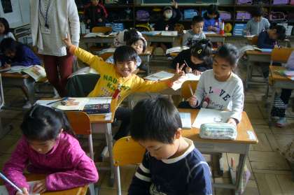 音楽を聴いてどんなことをイメージしたかを発表し、その絵を描きました。