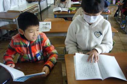 書き上げた説明文を隣どうしで交換して推敲しています。