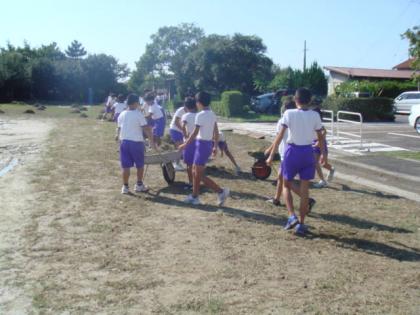 地域の田中さんが刈ってくれた草の片付けなどをしました。