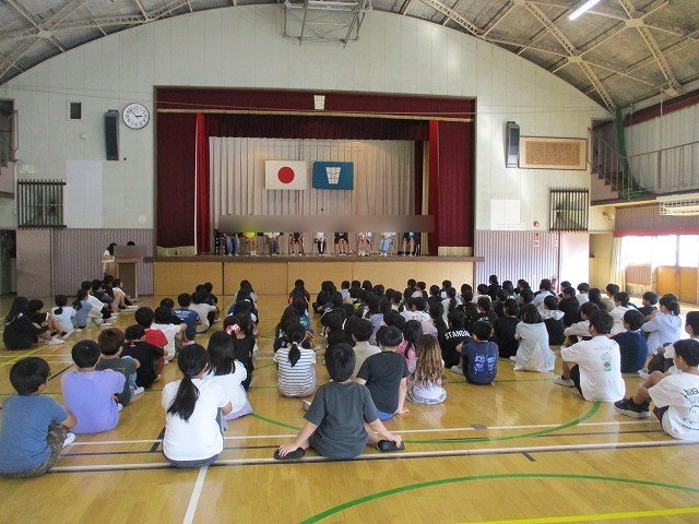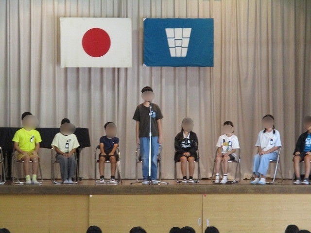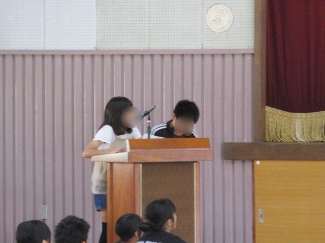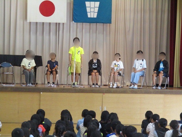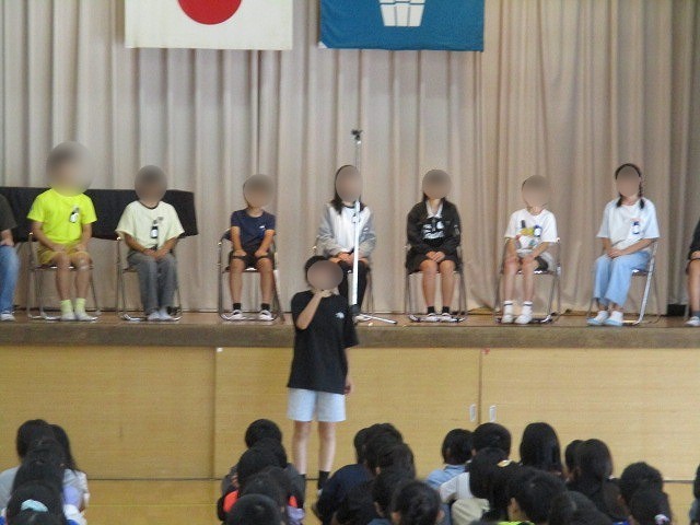 児童会からは、1学期に応募した「うみともくんのおともだち」の発表がありました。児童会主体で、いろいろな活動が広まりつつあります。