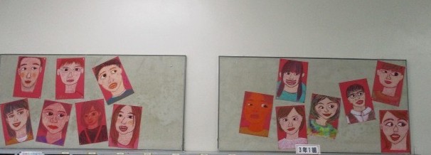 先生たちの描いた自画像は、北館昇降口に掲示しました。どれが誰だか分かりますか?
