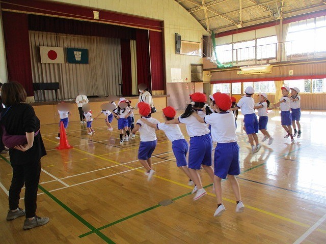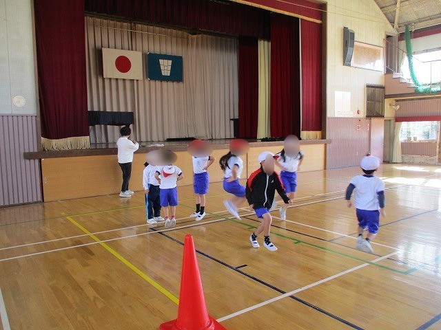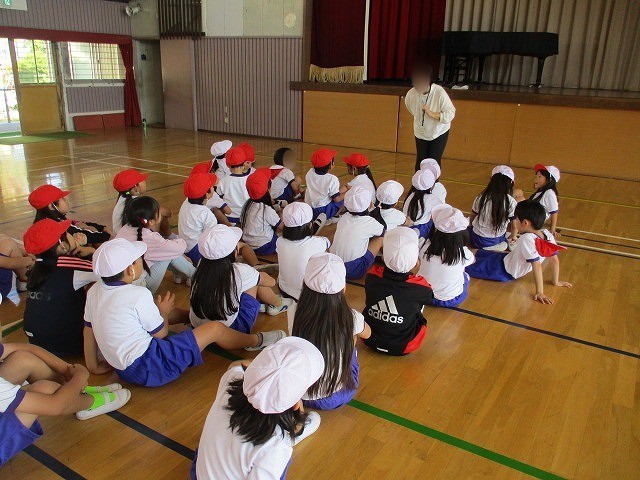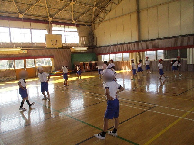 今日は、2時間目に居住地交流がありました。体育の時間だったので、みんなで、体を動かして楽しみました。最初はいろいろな動物に変身をして、もうじゅうがりを行いました。上手にグループを作って座りました。その後は、ピカチュー対リザードンの裏返し競争。そして、しろくまのジェンカ、最後はジャンケンピラミッドをしました。