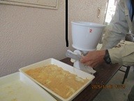 4年生が総合の学習でもちつき体験をしました。地域の方の協力のもと、子どもたちが田植え、稲刈りしたもち米を使わせていただきました。釜でもち米が蒸されると、いい香りがしてきます。蒸したてのもち米を温めた石臼に入れるともちつき体験の始まりです。子どもたちと保護者ボランティアさんの全員で、かけ声をかけながら、きねを使って餅をついていきました。つきたてのお餅は、あんこやきなこをまぶしていただきました。「とってもおいしい」と子どもたちの笑顔があふれていました。