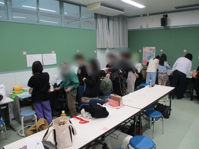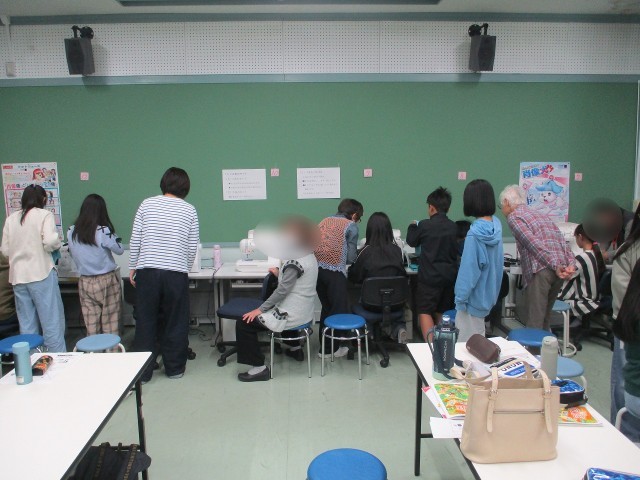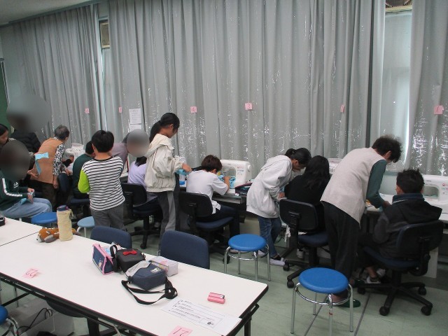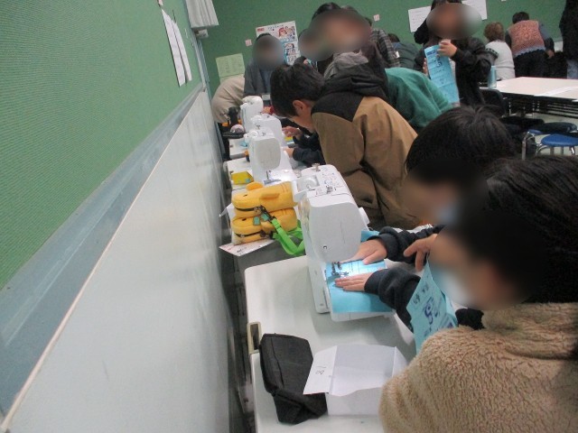 手縫いボランティアの方にたくさん来ていただき、手縫いで小物作りを行いました。