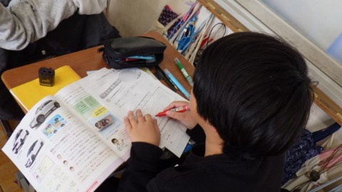 算数の授業の様子です。今日は分数の足し算について学習しました。(5分の2)+(5分の1)を、水の量や数直線などいろいろな考え方をつかって計算しました。また、(5分の2)は、(5分の1)の2つ分のような考え方も使いました。みんな集中力をもって学習に取り組んでいました。