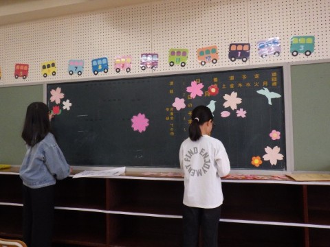 明日(4/8)の入学式に向けて新6年生が準備をしてくれました。