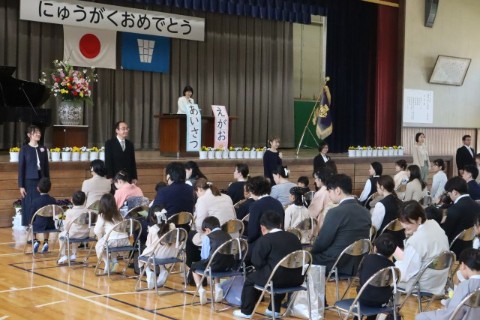 入学式を行いました。式の中では、校長先生のお話や来賓の方のお祝いの言葉に加えて、担任の発表がありました。