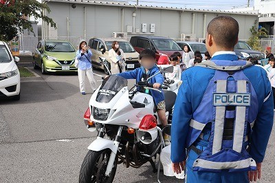 見学ブースでは、本物の白バイとパトカーに乗せていただいたり、パトカーのマイクやサイレンまで触らせていただいたりしました。