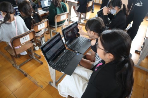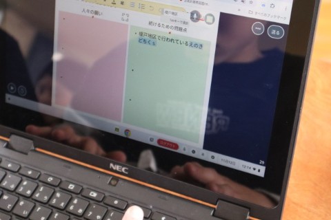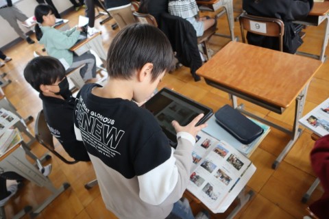子どもたちは、教科書や資料から読み取ったことをタブレット端末のアプリを使ってまとめていました。