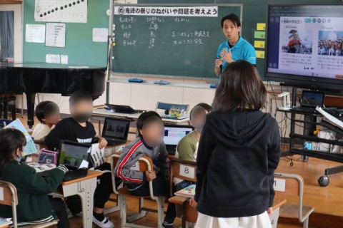 今回の授業は、近隣の市町から多くの先生が見学に来る授業でしたが、緊張しながらも一生懸命取り組む子どもたちの姿が見られました。